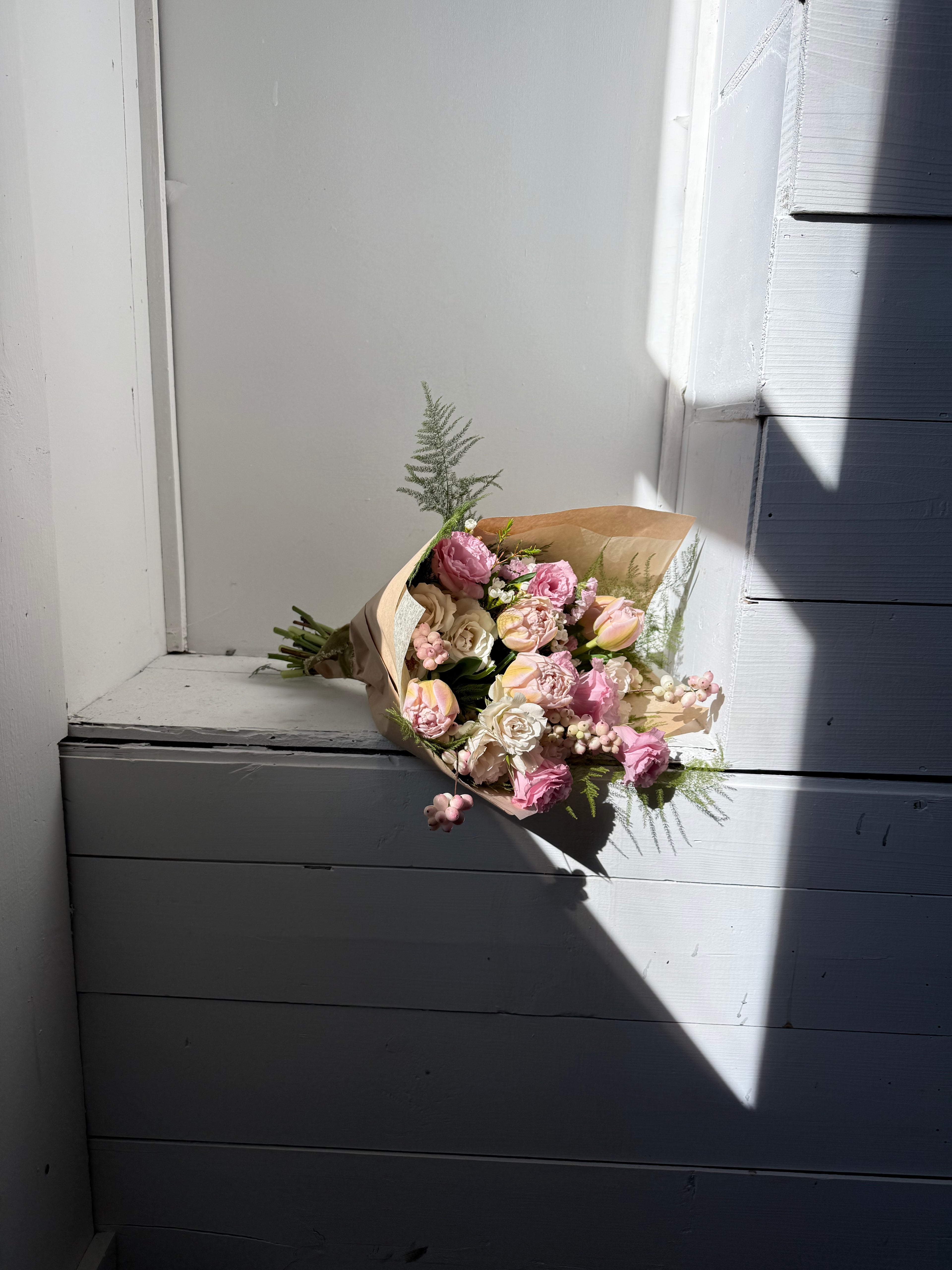 Our House Favorites arrangements arrive in carefully chosen vessels, ready to place and enjoy. Each piece is unique and composed with the designers favorite seasonal stems. Organic in form, and the kind of quiet beauty that feels at home in your space. Flowers are sourced locally when the season allows.